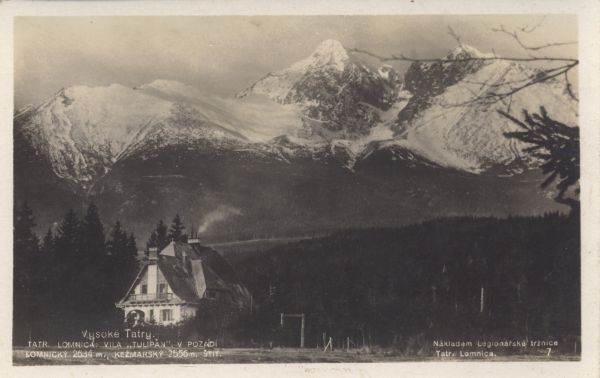 Vysoké Tatry. TATR. LOMNICA: VILA "TULIPÁN", V POZADÍ LOMNICKĘ 2634 m., KEźMARSKĘ 2556 m ©TÍT.