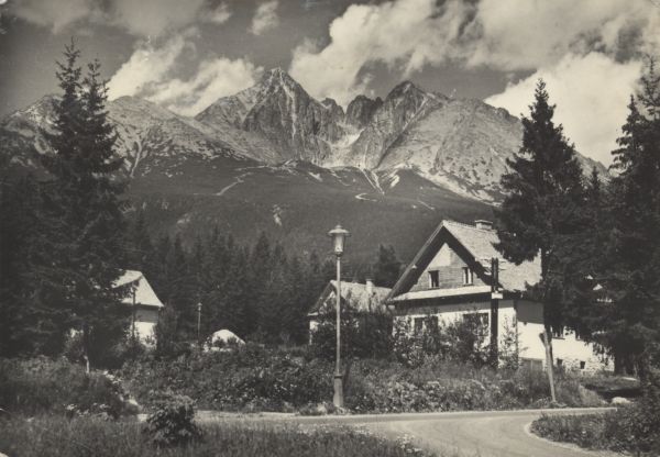 VYSOKÉ TATRY - Tatranská Lomnica (850 m). V pozadí skupina Lomnického ątítu (2832 m)