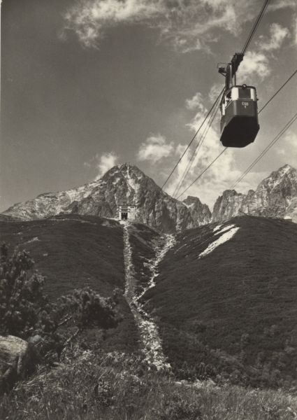 TATRY WYSOKIE. Kolej linowa do Łomnickiego Stawu. W tle Łomnica.