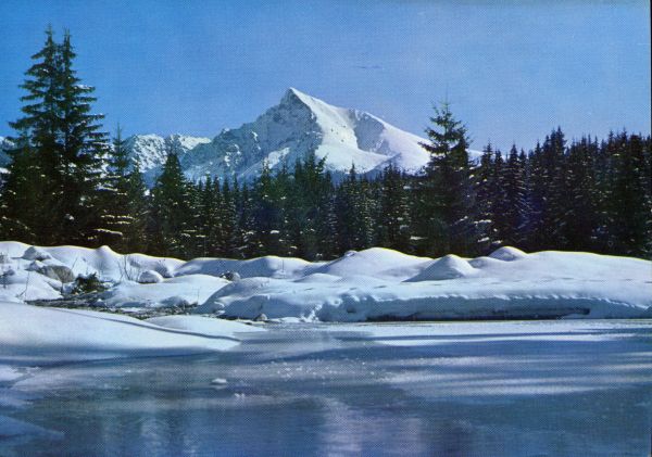Widok z Podbańskiej na Krywań w zimowej scenerii.