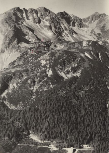 Rohacze - widok z Rakonia na Trzy Kopy, w dole schronisko Tatliaka.