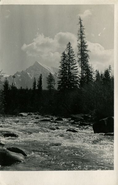 [Kriváň z Podbanského. V popredí riečka Belá.]