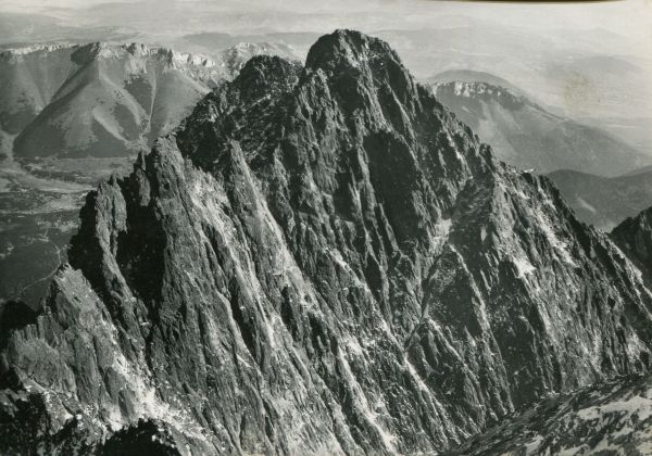 VYSOKÉ TATRY Poh”ad z Lomnického čtítu (2632 m) na KeŸmarskę čtít (2558 m). V pozadí hrebeò Belanskęch Tatier