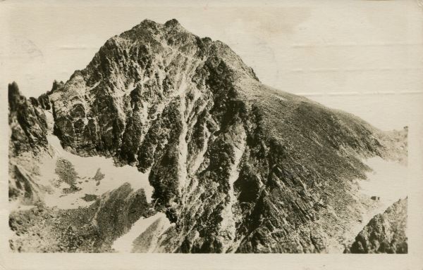 Widok na Rysy i Przełęcz Waga. W prawym dolnym rogu schronisko pod Rysami (schronisko pod Wagą).