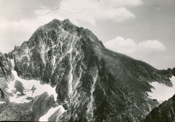 Tatrzański Park Narodowy [Słowacja]. Krywań z Siodełkowej Kopy (profil głowy indianina). [Błędny opis. Fotografia przedstawia Rysy i Przełęcz Waga]