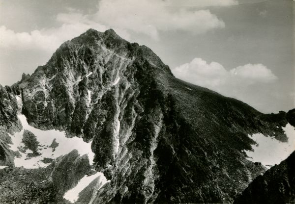 Tatrzański Park Narodowy [Słowacja]. Krywań z Siodełkowej Kopy (profil głowy indianina). [Błędny opis. Fotografia przedstawia Rysy i Przełęcz Waga]