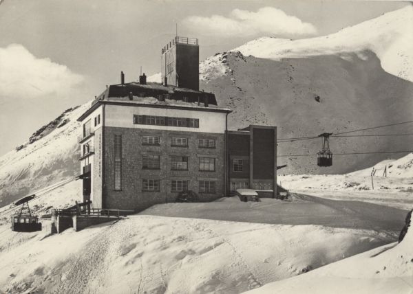 TATRY WYSOKIE - Łomnicki Staw. Hotel Encián i stacja kolei linowej.