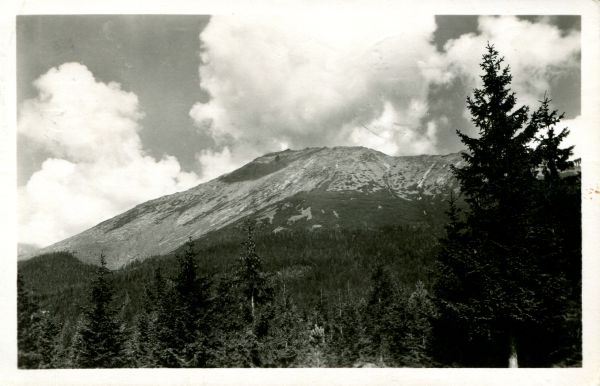 Widok na Sławkowski Szczyt. Na pierwszym planie las.