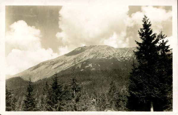 Widok na Sławkowski Szczyt. Na pierwszym planie las.