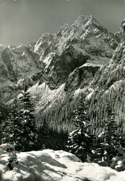 Widok na masyw Ganku z Doliny Białej Wody w scenerii zimowej.