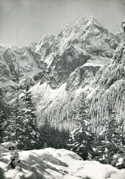 Widok na masyw Ganku z Doliny Białej Wody w scenerii zimowej.