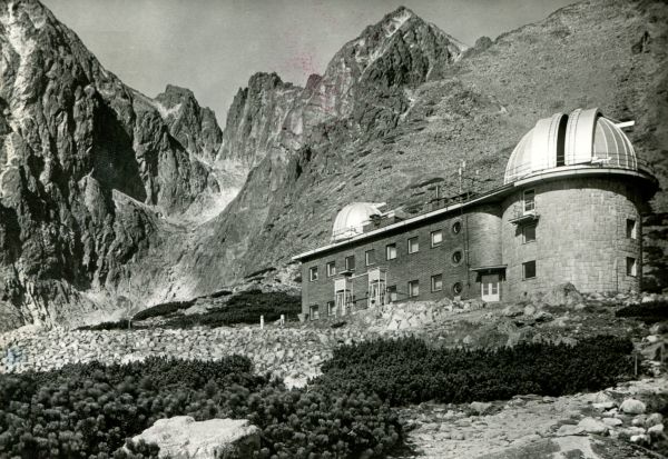 VYSOKÉ TATRY - Astronomický ústav SAV v Skalnatej dolinie. Vµavo Lomnický ątít (2632 m), Vidlové veľe s Vidlovým sedlom a Keľmarský ątít (2558 m)