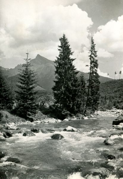 Wysokie Tatry. Krywań z Podbańskiej. Z przodu rzeczka Biała Liptowska. Tytuł również w języku: ros., niem., ang.