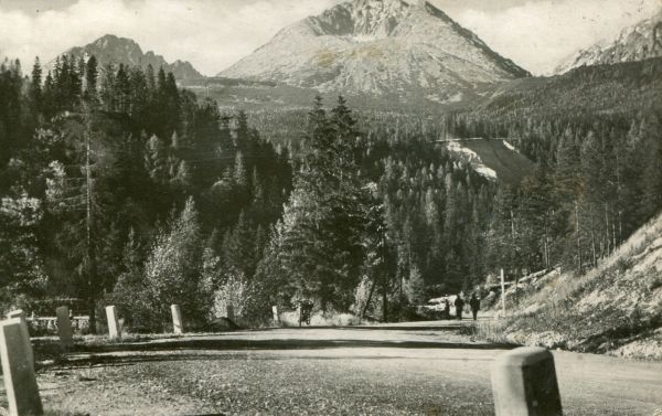 Widok na Gerlach z Tatrzańskiej Polanki. Na pierwszym planie Droga Wolności, w głębi las.