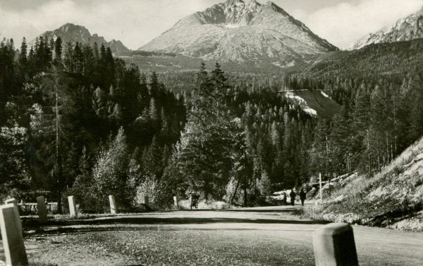 Widok na Gerlach z Tatrzańskiej Polanki. Na pierwszym planie Droga Wolności, w głębi las.