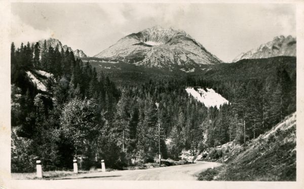 Widok na Gerlach z Tatrzańskiej Polanki. Na pierwszym planie Droga Wolności, w głębi las.