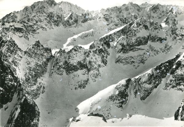 VYSOKÉ TATRY Pohľad z Lomnického štítu (2632 m) do Malej a Veľkej Studenej doliny. V pozadí Gerlachovský štít (2655 m)