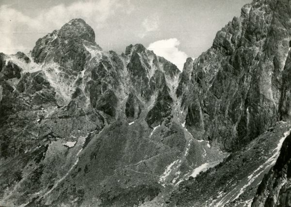 Widok na Dziką Turnię, Rohatkę i grań Małej Wysokiej ze Zmarzniętego Kotła.