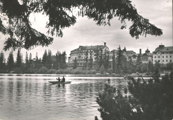 VYSOKÉ TATRY Pohľad od Štrbského plesa (1350 m) na liečebné ústavy Hviezdoslav a Kriváň