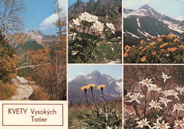 VYSOKÉ TATRY - VYSOKIE TATRY - HOHE TATRA - THE HIGH TATRAS Veternica narcisokvetá (Anemone narcissiflora) - Kuklica horská (Sieversia montana) - Prastnica jednoúborná (Hypochoeris uniflora) - Plesnivec alpínsky (Leontopodium alpinum).