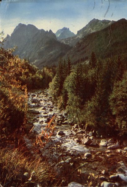 Tatrzański Park Narodowy [Słowacja] - Dolina Białej Wody. Widok z lewej na Młynarz, Niżnie Rysy i grań Siedmiu Granatów. Tytuł również w języku: ros., ang., niem.