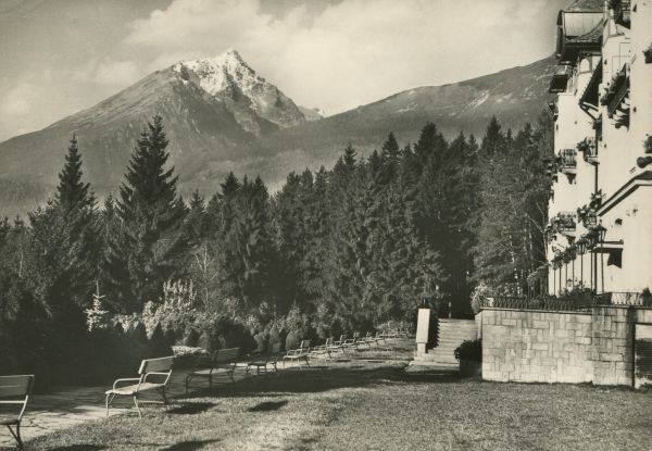 VYSOKÉ TATRY - Tatranská Lomnica Pohµad na Slavkovský ątít (2453 m) od Grandhotela Praha