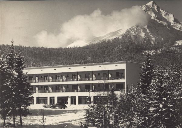 Tatry Wysokie - Tatrzańska Łomnica. Dom wypoczynkowy RZZ Donbas, w tle Sławkowski Szczyt.