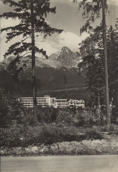 VYSOKÉ TATRY - Tatranská Lomnica Zotavovňa ROH Morava, v pozadí Lomnický štít (2634 m)