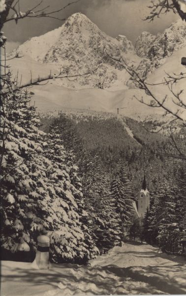 Vysoké Tatry - Tatranská Lomnica. Horský kostolík s Lomnickým štítom.