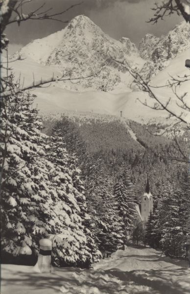 Vysoké Tatry - Tatranská Lomnica. Horský kostolík s Lomnickým štítom.
