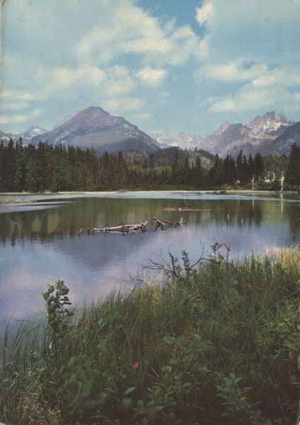 VYSOKÉ TATRY - HOHE TATRA - THE HIGH TATRAS Nové ©trbské pleso (1315 m). Pohµad na Veµké Solisko (2404 m), ©trbský ątít (2385 m) a Patriu (2203 m)