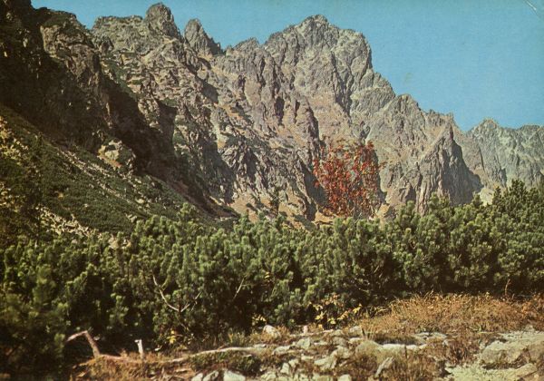Pośrednia Grań z Doliny Małej Zimnej Wody. Na pierwszym planie łan kosodrzewiny (Pinus mugo Turra).