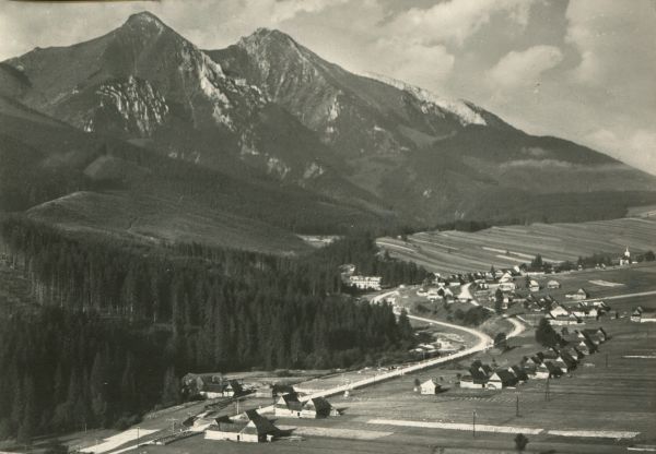 Widok na osadê Zdziar, w tle Płaczliwa Skała i Hawrań.