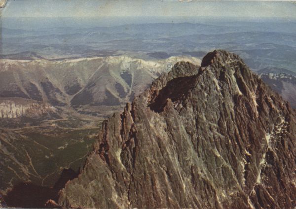Tatrzański Park Narodowy [Słowacja] - widok na Kieżmarski Szczyt. W tle grań Tatr Bielskich. Tytuł również w jêzyku: ros., ang., niem.