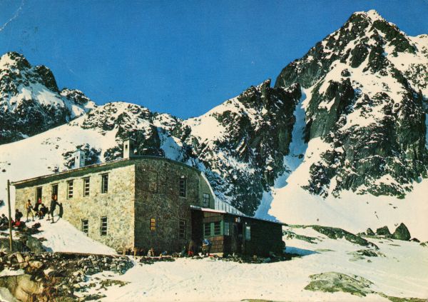 VYSOKÉ TATRY - VYSOKIE TATRY - HOHE TATRA - THE HIGH TATRAS Téryho chata (2015 m) v Malej Studenej dolinie, vµavo ©iroká veľa (2461 m), vpravo Malý Ąadový ątít (2611 m)