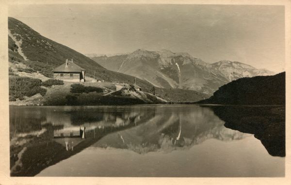 Tatry Wysokie - Zielony Staw. Schronisko Klubu Turystów i Narciarzy. W tle Tatry Bielskie.