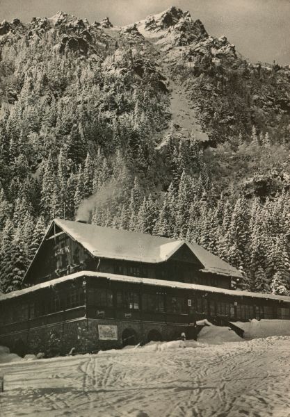 Schronisko pod Kozicą na Polanie Staroleśnej w Dolinie Zimnej Wody w zimowej scenerii.