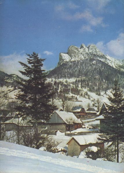 Mała Fatra. Wielki Rozsutec - Widok na Południowe Skały w zimowej scenerii. Na pierwszym planie zabudowania osady Štefanova.
