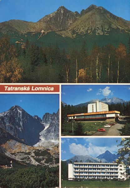 VYSOKÉ TATRY - VYSOKIE TATRY - HOHE TATRA - THE HIGH TATRAS Tatranská Lomnica Pohµad na masív Lomnického a Keľmarského ątítu. Lomnický ątít zo Skalnatého plesa. Zotavovňa ROH Uran. Zotavovňa ROH Morava.
