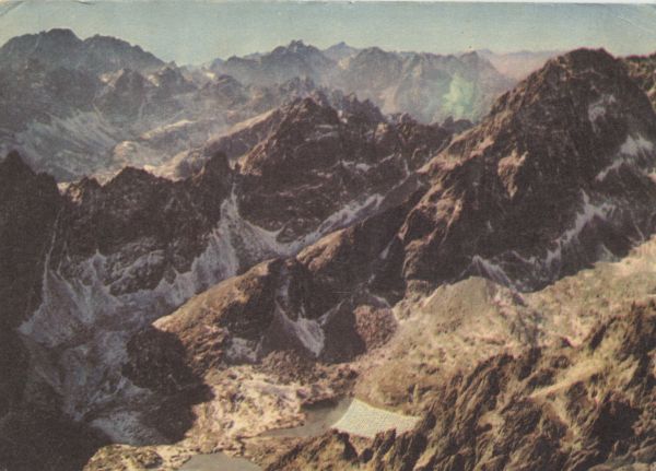 Tatrzański Park Narodowy {Słowacja]. Widok z Łomnicy na zachód. Od lewej na horyzoncie Gerlach, Wysoka, Krywań i Lodowa Kopa. Tytuł również w jêz.: ros., ang., niem.