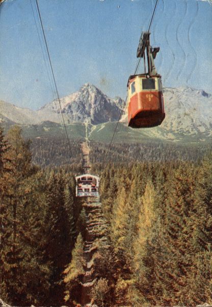 TATRANSKÝ NÁRODNÝ PARK - Lanovka z Tatranskej Lomnice na Skalnaté pleso. V pozadí Lomnický štít (2634 m)