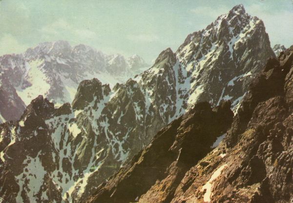 Tatrzański Park Narodowy [Słowacja]. Widok z Łomnickiej Grani na Po¶redni± Grań. Tytuł również w jêzyku: ros., ang., niem.