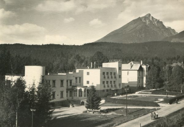 VYSOKÉ TATRY - Tatranská Lomnica Zotavovňa ROH Javorina V pozadí Slavkovský štít (2453 m).