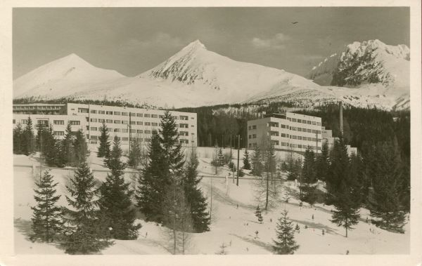 Vysoké Tatry - Vyšné Hágy 1072 m n. m. Sanatorium R.S.P. Tupá 2293 m, Končistá 2540 m, Gerlach 3663 m.