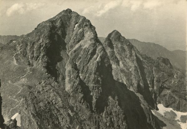TATRANSKÝ NÁRODNÝ PARK Pohľad na Rysy (2499 m) a Nižné Rysy (2438 m) zo severnej steny Vysokej