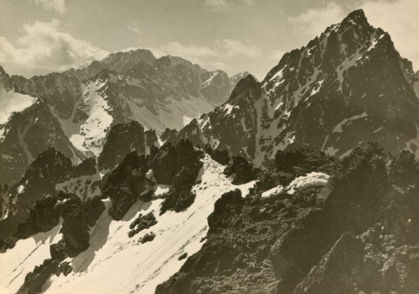 Tatrzański Park Narodowy [Słowacja]. Widok z Łomnickiej Grani na Po¶redni± Grań. W tyle Szczyt Stalina.
