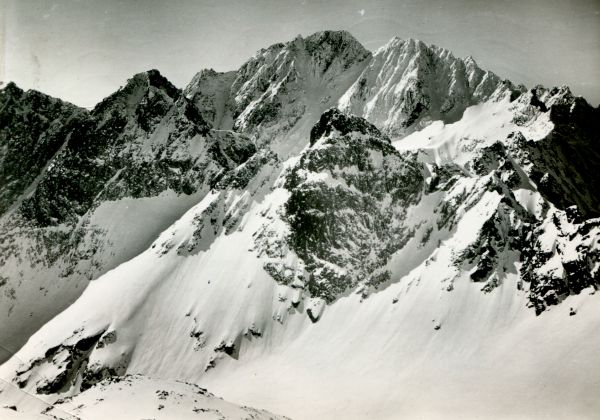 VYSOKÉ TATRY Východná Vysoká (2428 m) a Divá veža (2376 m). V pozadí Gerlachovský štít (2655 m)