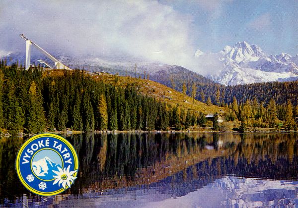 VYSOKÉ TATRY WYSOKIE TATRY - HOHE TATRA - THE HIGH TATRAS Pohľad od Štrbského plesa (1346 m) na lyžiarsky mostík a Vysokú (2560 m)