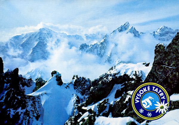 VYSOKÉ TATRY - WYSOKIE TATRY - HOHE TATRA - THE HIGH TATRAS Poh”ad z Lomnického hrebeòa, Slavskovskę čtít (2452 m), Prostrednę hrot (2440 m), ©iroká veŸa (2461 m).