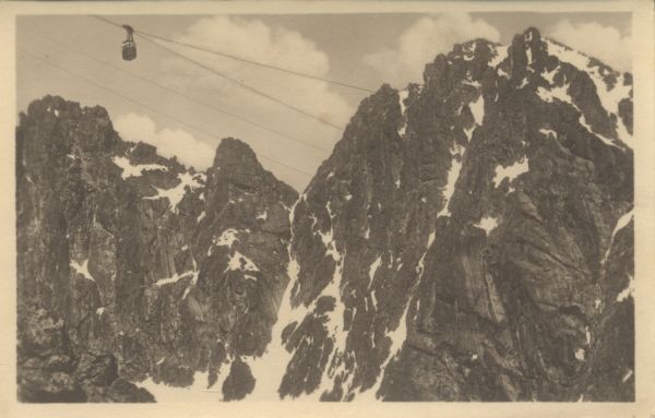 Tatry Wysokie. Kolej linowa na Łomnicę, po prawej stronie Kieżmarski Szczyt.